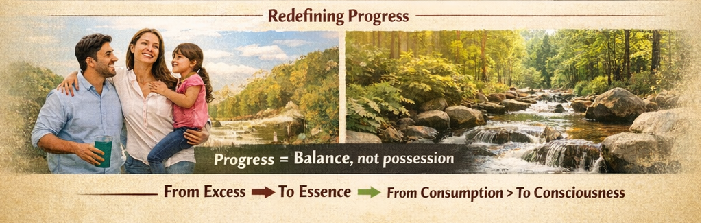 Aparigraha challenges one of the deepest assumptions of modern civilization—that progress is measured by accumulation.